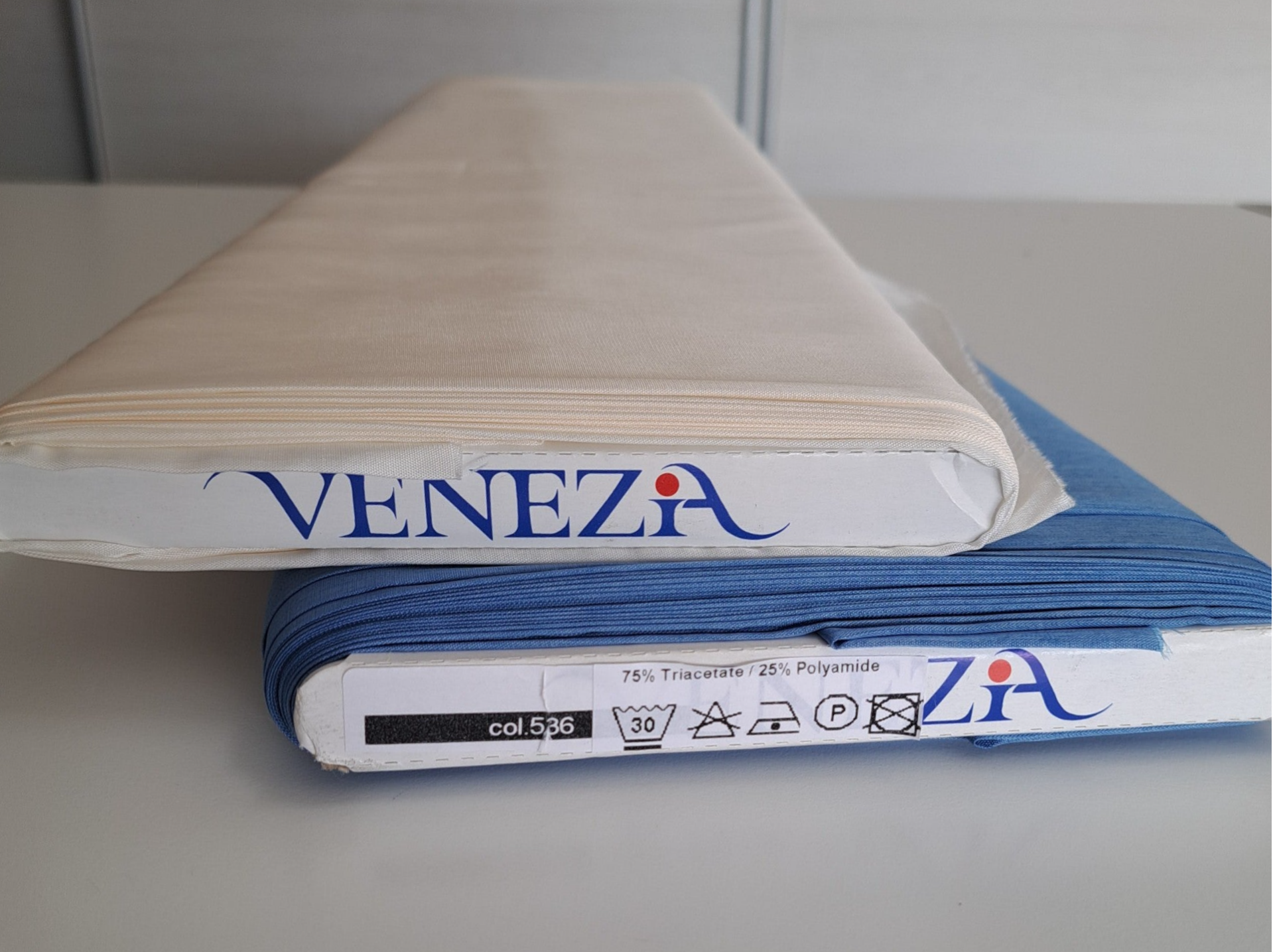 De Venezia voering wordt 'de parel' onder de voeringstoffen genoemd: ze is makkelijk in onderhoud: vormvast, krimpt niet, blijft glad, is sterk en voelt heel aangenaam aan. Deze voering, op basis van Jaspé garen, heeft een zijdeachtige glans en is anti-statisch en huidvriendelijk