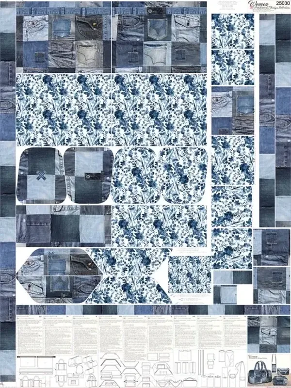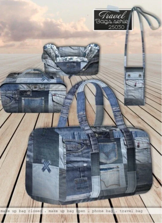 Mooie canvas paneel stof van de serie travel bags met een jeans print.