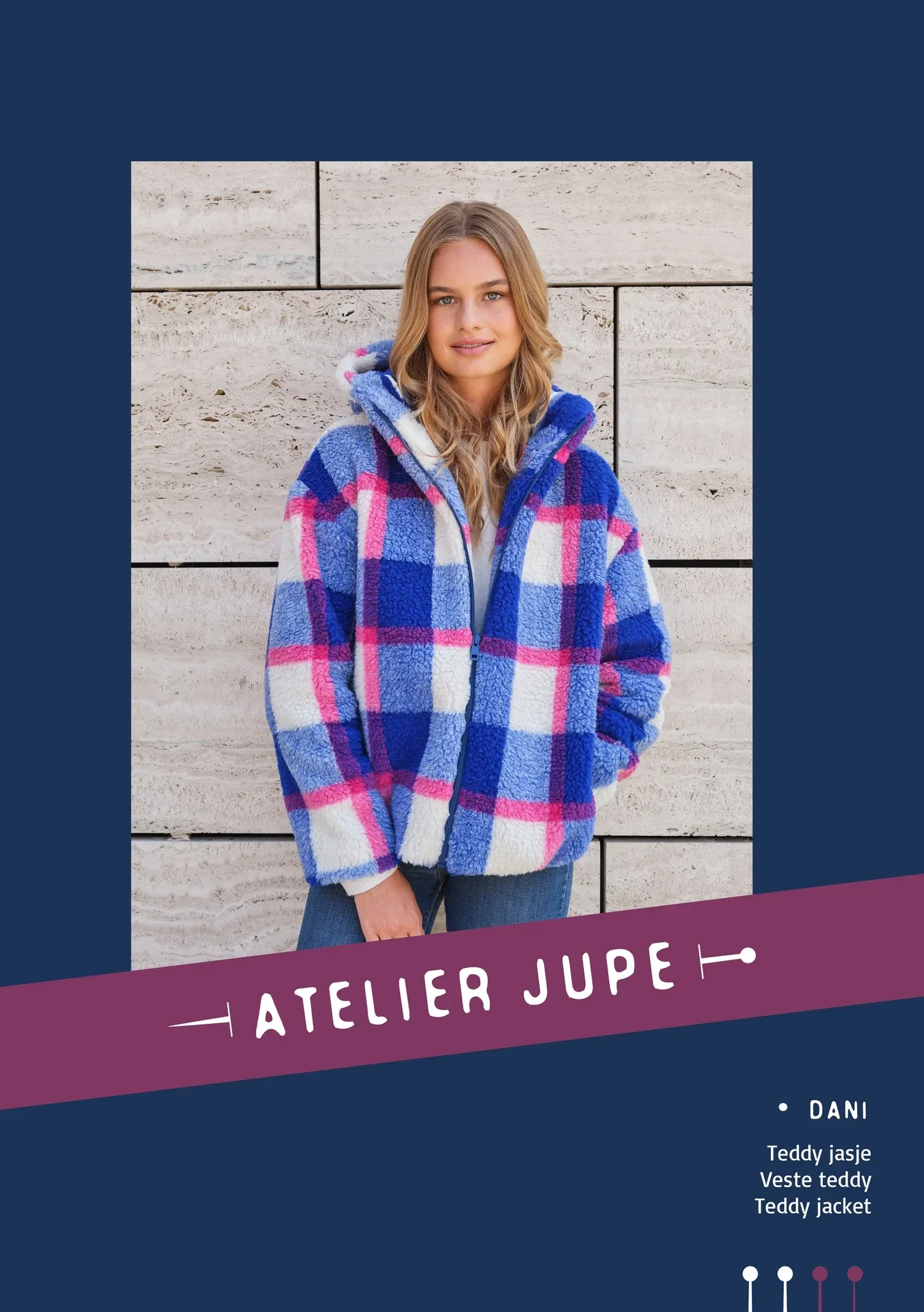 Dani is een veelzijdig patroon van een oversized vestje met meerdere opties. Je kan kiezen tussen een kap of kraag en een rits of aangezet knopenpad. Dani heeft zakken, een voorbeleg en is volledig gevoerd. Het voorbeleg zorgt voor een mooie afwerking wanneer het vestje open valt.
